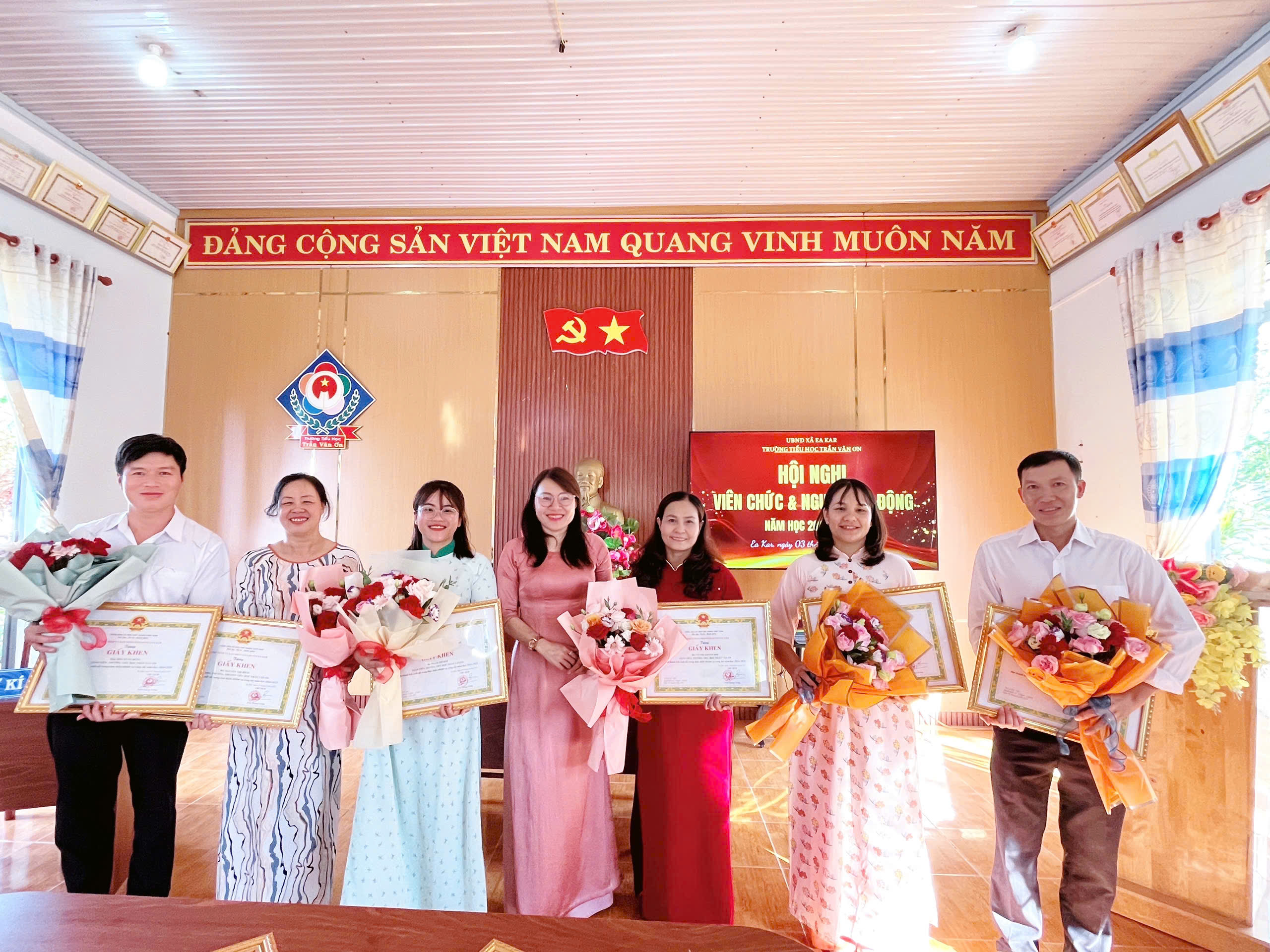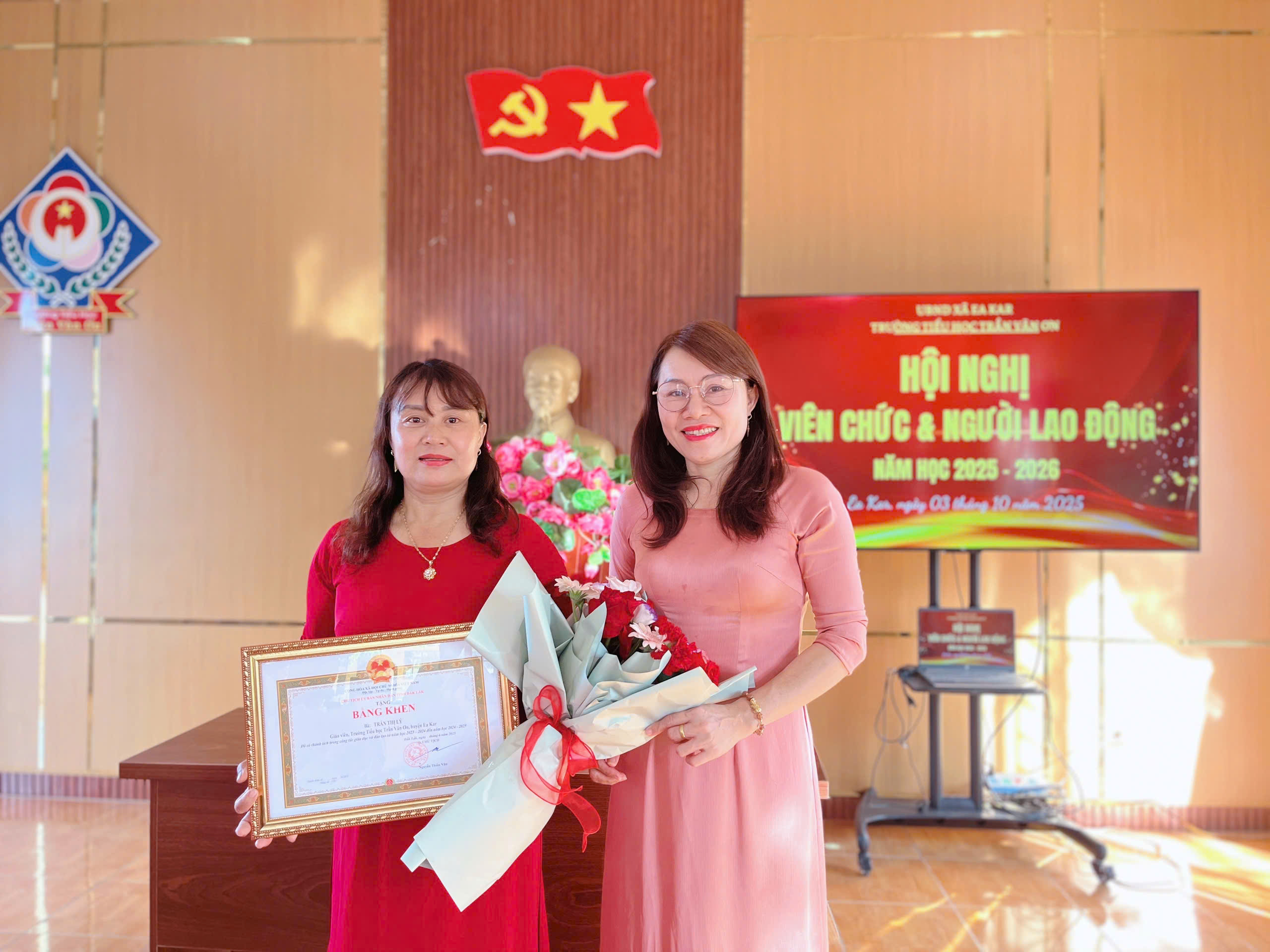 Sau phần tiếp thu và trả lời các ý kiến là phần trao tặng giấy khen cho các danh hiệu thi đua năm học 2024-2025.