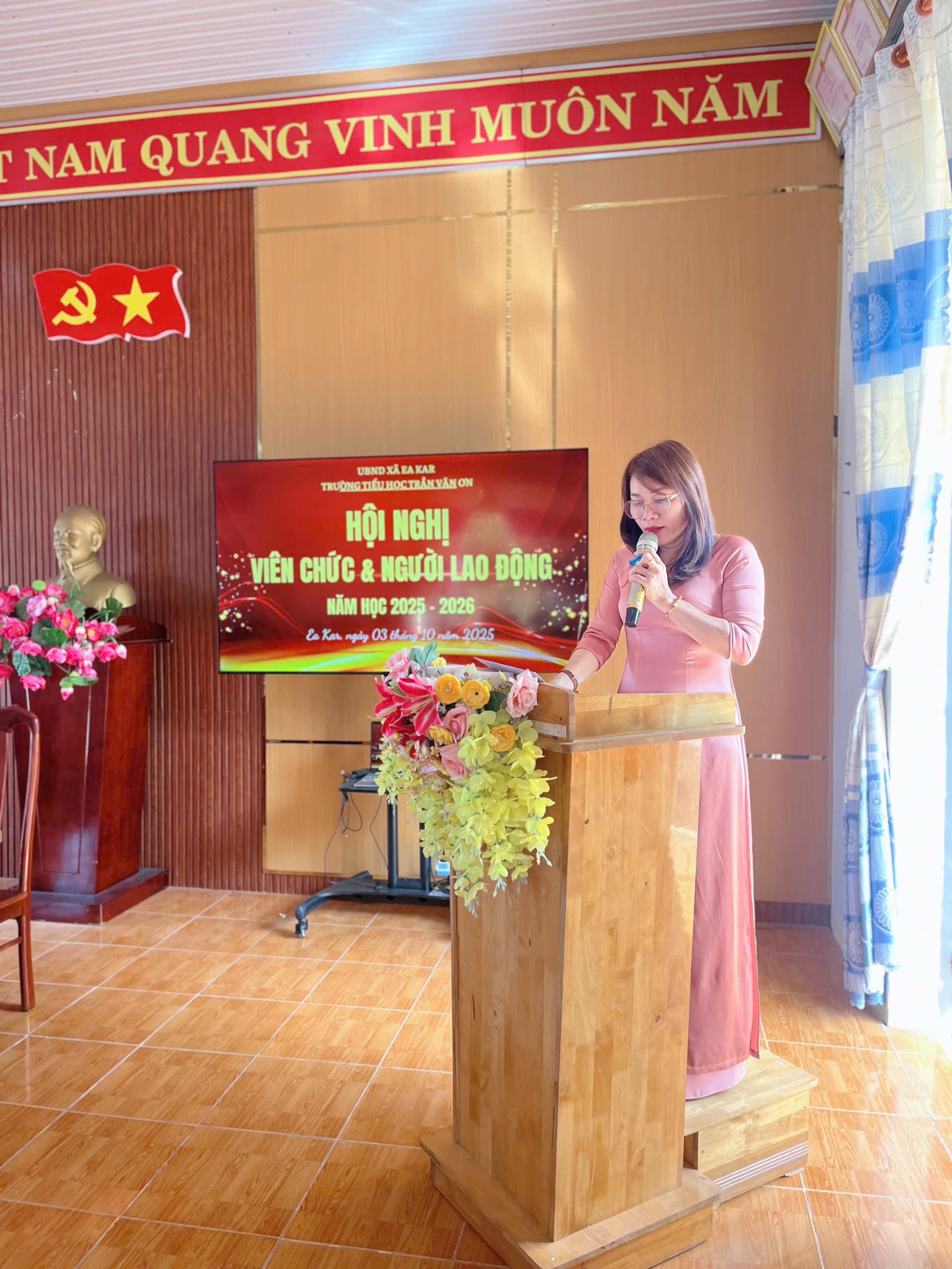 Vào lúc 14h00 ngày 03 tháng 10 năm 2025, Trường Tiểu học Trần Văn Ơn đã tổ chức Hội nghị Viên chức & Người lao động năm học 2025-2026 tại Hội trường của trường. Đây là một sự kiện quan trọng, không chỉ nhằm tổng kết những thành tựu đã đạt được trong năm học 2024-2025 mà còn để đề ra những phương hướng, nhiệm vụ cho năm học mới.