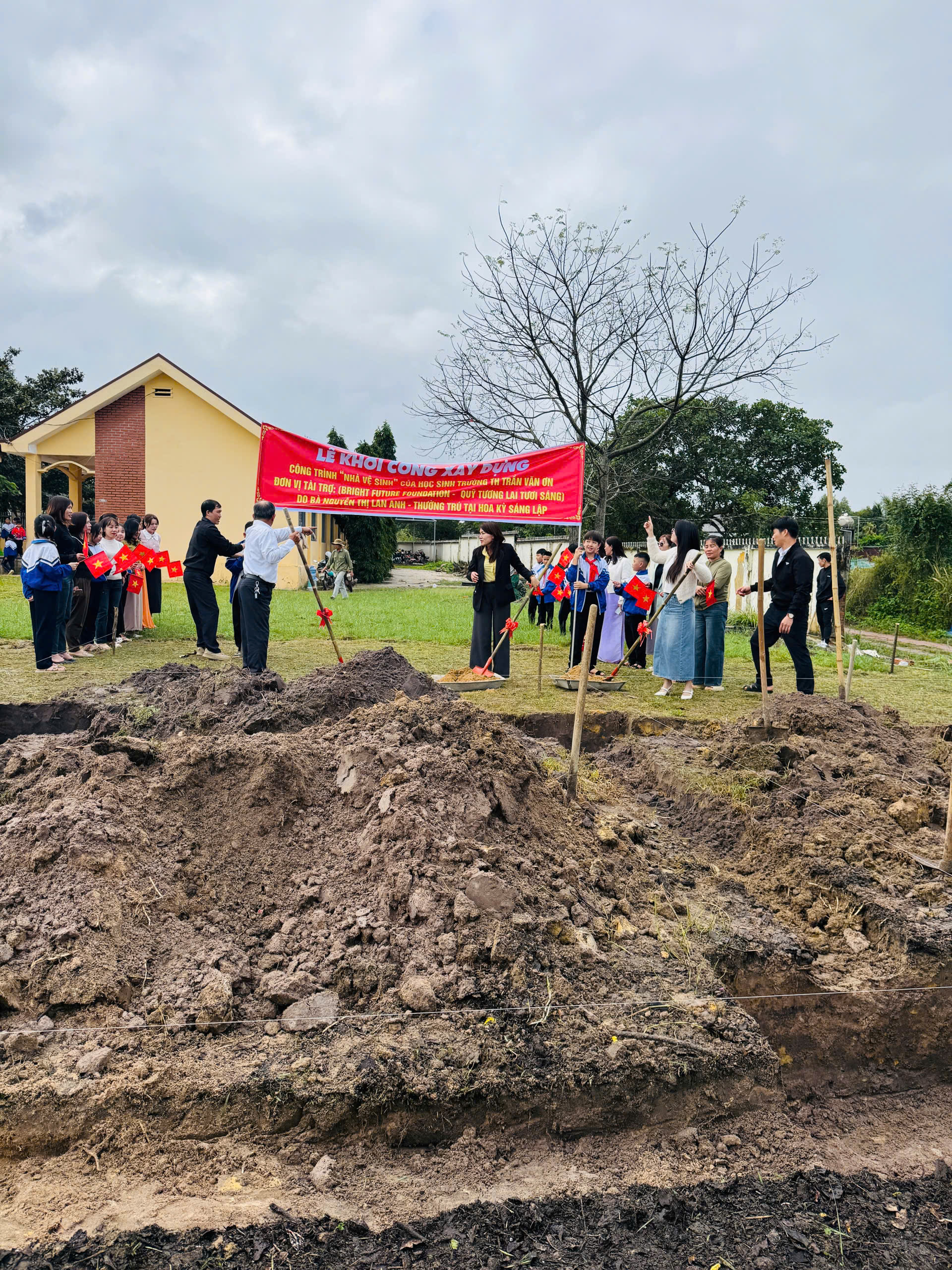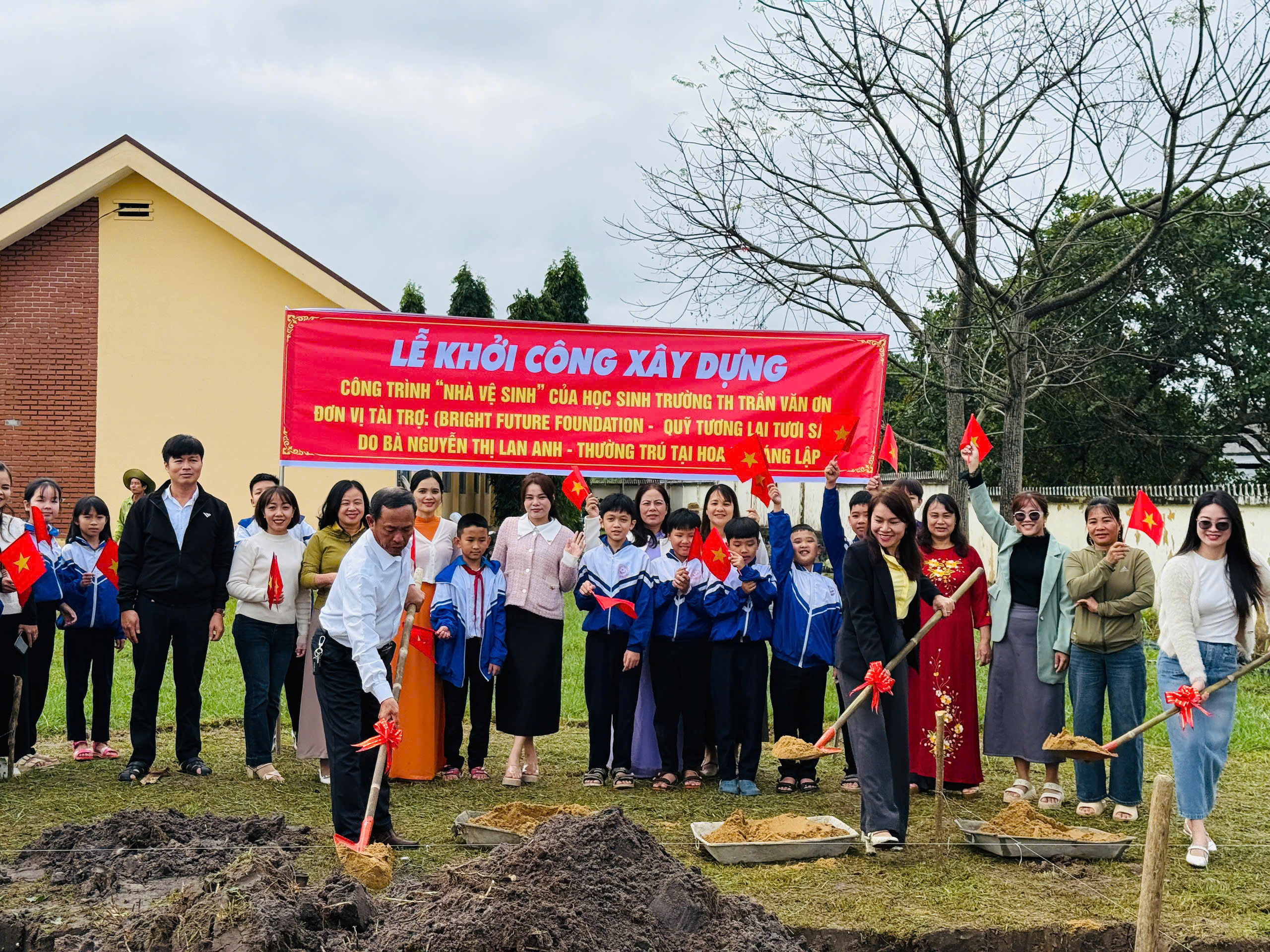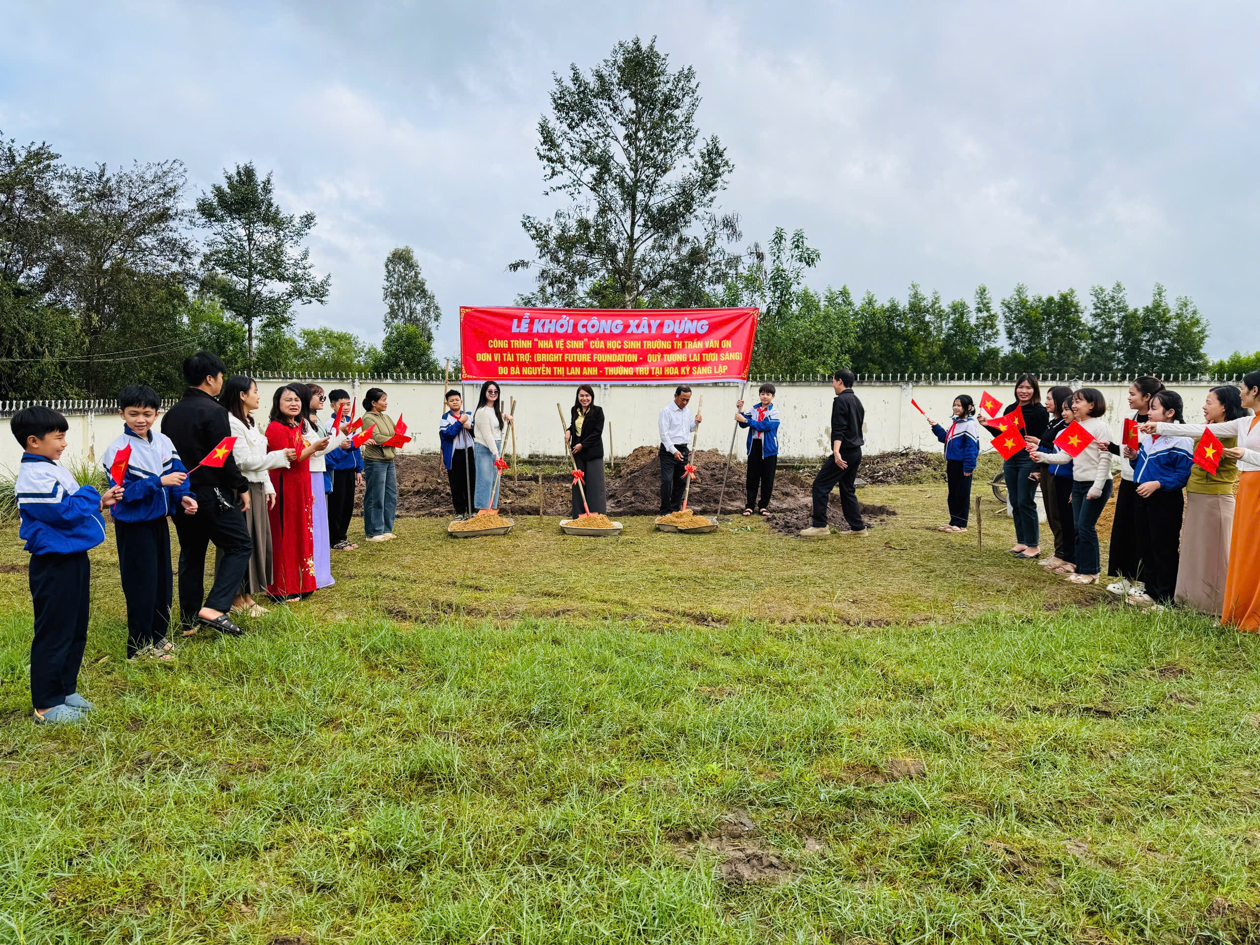 LỄ KHỞI CÔNG XÂY DỰNG CÔNG TRÌNH”NHÀ VỆ SINH” CỦA HỌC SINH TRƯỜNG TH TRẦN VĂN ƠN. ĐƠN VỊ TÀI TRỢ:(BRIGHT FUTURE FOUNDATION-QUỸ TƯƠNG LAI TƯƠI SÁNG) DO BÀ : NGUYỄN THỊ LAN ANH-THƯỜNG TRÚ TẠI HOA KỲ SÁNG LẬP.